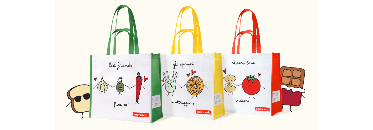 Il progetto ‘Il bello di stare insieme’ ha visto la collaborazione di Bennet con gli studenti del corso di Design del Tessile della Scuola Oliver Twist di Cometa. Agli studenti Bennet ha chiesto di disegnare la quarta collezione delle nuove shopper riutilizzabili. La relazione di Bennet con Cometa, già attiva in passato, si è trasformata in una vera partnership educativa e formativa con lo sviluppo congiunto di un progetto tangibile.
